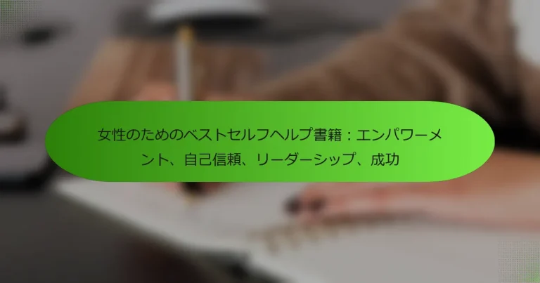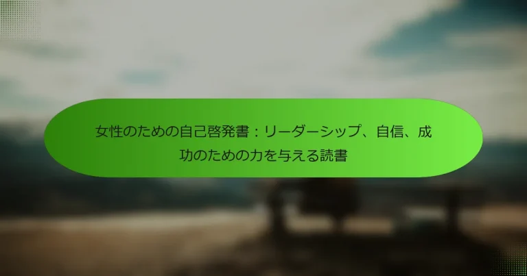 自信、成功、リーダーシップスキルを解き放つことは、女性の個人的および職業的成長に不可欠です。女性のための自己価値本は、実用的な戦略、インスピレーションを与えるストーリー、コミュニティのサポートを提供します。これらは、女性が直面する独自の課題に対処し、自己肯定感とレジリエンスを高めます。これらのリソースに関与することで、マインドセットや成果において変革的な変化をもたらすことができます。 女性のための自己価値本とは何ですか? 女性のための自己価値本は、読者の自信、成功、リーダーシップスキルを高めることで力を与えます。これらの本は、個人的な成長、レジリエンス、自己受容に焦点を当てています。多くは実用的な演習、インスピレーションを与えるストーリー、実行可能なアドバイスを特徴としており、自己価値を向上させたい女性にとって貴重なリソースとなっています。特に、読者の間にサポートコミュニティを育む独自の特性を強調することが多いです。これらの本に関与することで、マインドセットや個人的な成果において大きな変革をもたらすことができます。 これらの本はどのように自信を高めるのですか? 女性のための自己価値本は、実用的な戦略、共感できるストーリー、力を与える洞察を提供することで自信を高めます。これらの本は、自己受容やレジリエンスなど、個人的な成長に不可欠な独自の特性に焦点を当てることが多いです。その結果、読者はネガティブな自己認識に挑戦し、自分の強みを受け入れるためのツールを得ます。この変革は、自己肯定感の向上とリーダーシップや成功に対する積極的なアプローチを促進します。 成功を達成する上でどのような役割を果たしますか? 女性のための自己価値本は、自信を構築する上で重要な役割を果たし、これは成功を達成することに直接寄与します。これらの本は、女性が自分の価値を認識し、個人的および職業的成長に不可欠なリーダーシップスキルを育むための洞察と戦略を提供します。その結果、読者は自己肯定感の向上や目標を追求する意欲の高まりを報告することが多いです。これらの本の独自の特性は、女性の経験に焦点を当て、彼女たちの旅に特有の課題に対処することにあります。強い自己価値感を育むことで、女性は障害をより効果的に乗り越え、人生のさまざまな側面での成功を高めることができます。 どのようにリーダーシップスキルを発展させることができますか? 自己価値本を読むことで、リーダーシップスキルを大幅に向上させることができます。これらの本は、自信を高めるための洞察、効果的なコミュニケーション、意思決定に関する情報を提供します。このような文献に関与することで、効果的なリーダーシップのための重要な根本的特性である自己認識が育まれます。女性はまた、自分の経験に合った独自の戦略を見つけ、リーダーシップの課題を乗り越えるのに役立ちます。さらに、これらの本に含まれる実用的な演習や反省は、成功したリーダーシップに不可欠なレジリエンスや適応力のような希少な特性を育むことができます。 自己価値本の普遍的な利点は何ですか? 女性のための自己価値本は、自信、成功、リーダーシップスキルを高める変革的な利点を提供します。これらの本は、個人的および職業的成長に不可欠な強い自己価値感を育むことで、読者に力を与えます。 主な利点には、自己肯定感の向上、意思決定能力の強化、レジリエンスの向上が含まれます。研究によれば、自己価値に関する文献に関与する女性は、自己主張の向上やリーダーシップの役割を追求する意欲が高まると報告しています。 さらに、これらの本は自己疑念を克服し、ポジティブな自己イメージを育むための実用的な戦略を提供します。女性が直面する独自の課題に対処することで、潜在能力を解き放ち、目標を達成するための貴重なリソースとして機能します。 要約すると、自己価値本は、女性が自信を高め、人生のさまざまな側面で存在感を主張するための重要なツールです。 どのように自己認識を促進しますか? 女性のための自己価値本は、個人的な強みや価値観に関する洞察を提供することで自己認識を促進します。これらの本には、読者が自分の目標や願望を特定するのを助ける反省を促す演習が含まれていることが多いです。これらのテキストに関与することで、自己認識が深まり、感情的知性が向上します。その結果、女性は自信を育むことができ、さまざまな側面でのリーダーシップスキルや成功につながります。 個人的成長にどのような影響を与えますか? 女性のための自己価値本は、自信を構築し、成功を促進し、リーダーシップスキルを発展させることで、個人的成長を大幅に向上させます。これらの本は、読者を力づける実行可能な洞察や共感できるストーリーを提供することが多いです。たとえば、研究によれば、自己啓発文献に関与する女性は、自
